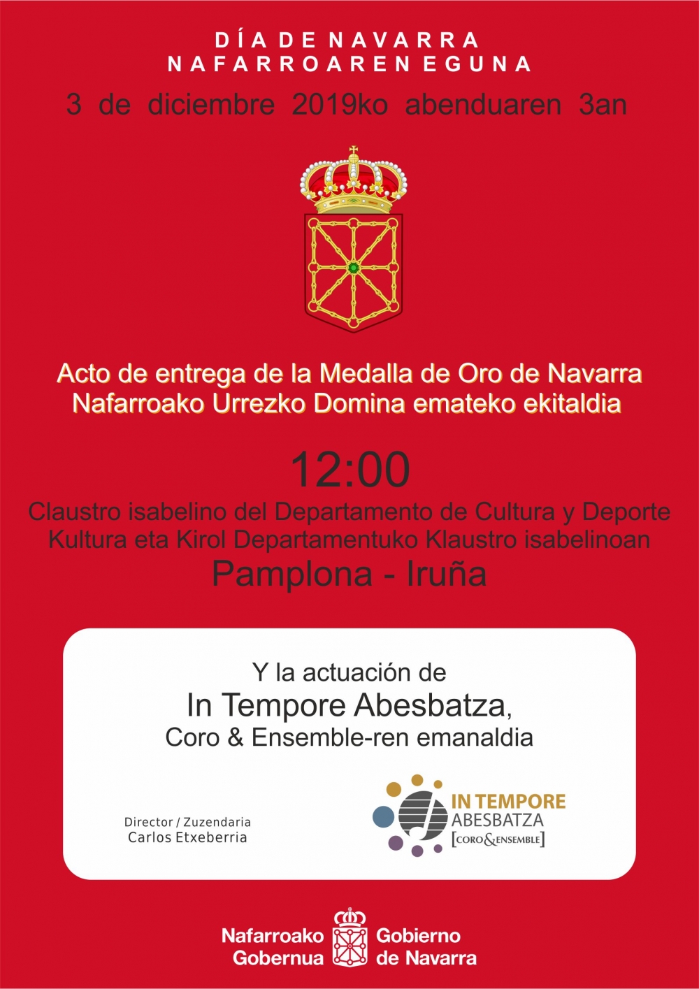 A las 12horas en el Claustro Isabelino del Departamento de Cultura y Deporte del Gobierno de Navarra.