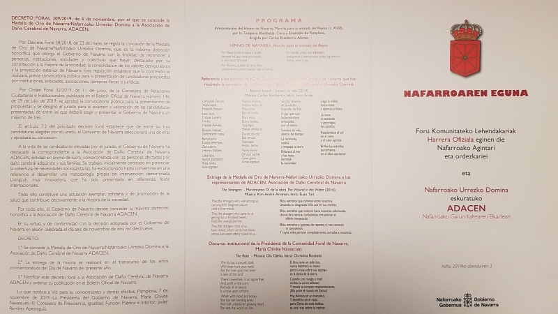 Recepción Oficial de la Presidenta de la Comunidad Foral a las Autoridades y Representaciones de Navarra y Entrega de la Medalla de Oro concedida a ADACEN